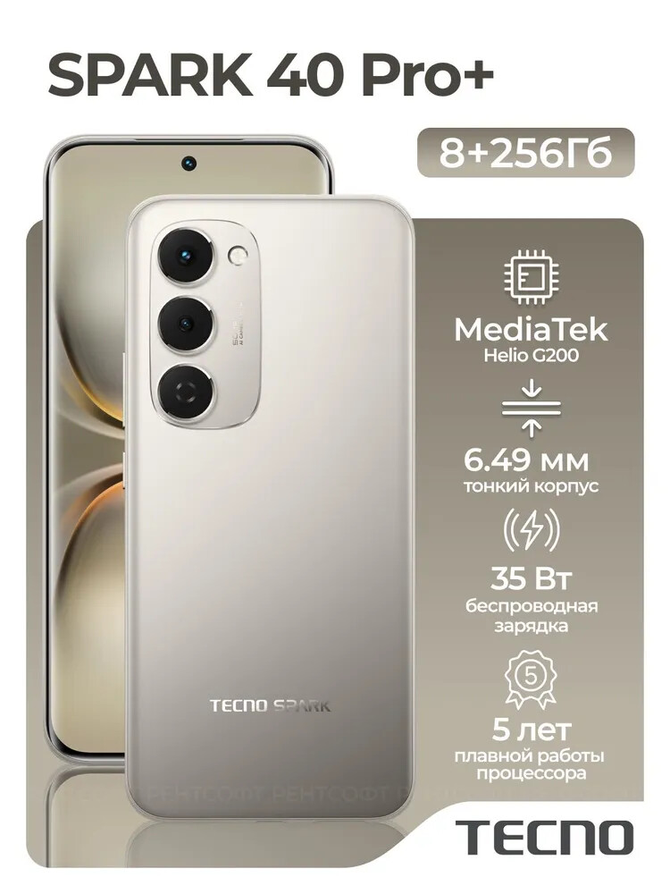 Купить Tecno Spark 40 Pro+ 8/256Gb Moon Titanium RU (EAC) CM7 в интернет-магазине xn----8sbbsmoefep2a0a.xn--p1ai с доставкой. Tecno Spark 40 Pro+ 8/256Gb Moon Titanium RU (EAC) CM7, артикул 4894947096358: читать описание, характеристики, фото